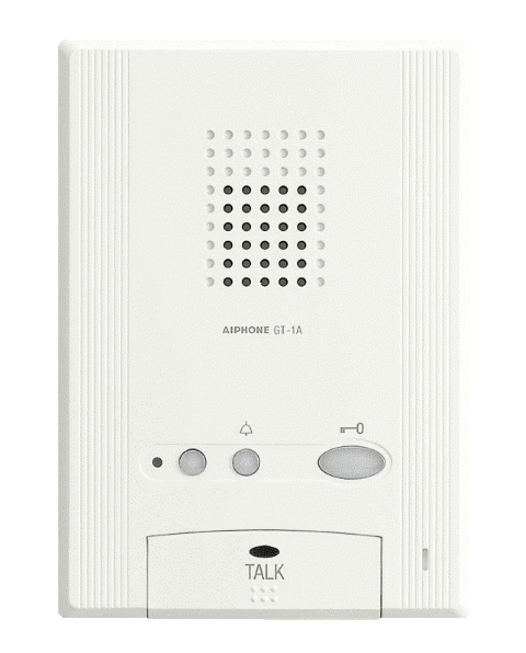 The GT-1A is an audio only tenant station for the GT series Multi-Unit entry system. It is equipped with a Talk, Door Release, and optional Service Button.