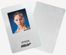 ISO Proximity Card in EM (ASK) Format. This card is approximately 2mm thickness (similar to a credit card) and reads up to 10cm dependent on reader. Allows photo ID's to be printed direct onto the cards. Works with 101-014 UltraProx Reader